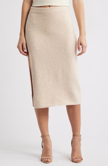 A split side gives easy movement to this supersoft skirt knit of a stretchy wool-kissed blend.