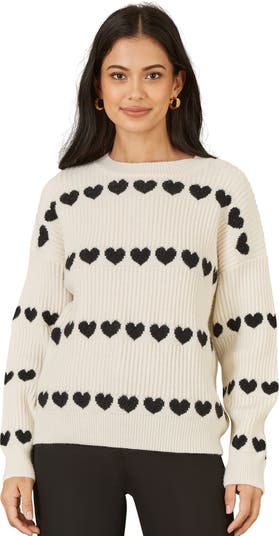 In a really cozy and soft yarn, this super cute heart stripe sweater looks great paired with denim for the cooler weather. In a relaxed fit, we can see this being your go to for a lunch or walk in the park.