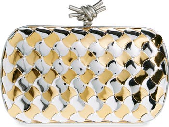 A wavy bicolor pavimento—Italian for tile —pattern updates the maison s signature weave on this evening-ready clutch topped with a knot-shaped clasp.