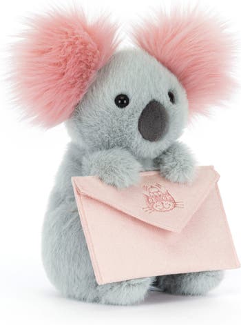 Special delivery: snuggles from your new favorite pen pal. This irresistibly plush koala stuffie clutching an embroidered envelope is always ready to share secrets and cuddles or sit quietly in a reading corner.