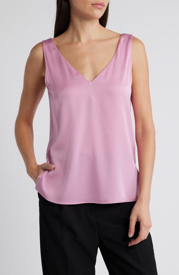 This classic shell is elevated in rich stretch silk and topped with dipped necklines.