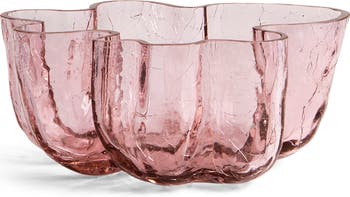 Handmade and mouth-blown in Sweden, this crackly glass bowl embraces imperfection and offers a whimsical accent to any room, with or without flowers.