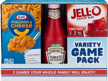 Three Games Your Whole Family Will Enjoy! JELL-O Jiggler Slap Game “LEFT HANDLIME!” Listen for the JELL-O flavor that’s read out loud, then be the quickest to slap your hand - the CORRECT hand - on the corresponding JELL-O Jiggler card. If a Jiggle! card is called out, you must jiggle and wiggle for the flavor you savor. You’ll love this quick-thinking, hand-slapping game from everyone’s favorite jiggly treat. There’s always room for this JELL-O gelatin game! KRAFT Macaroni Cheese Game Satisfy your cravings with the KRAFT Macaroni Cheese Game! Roll the dice and add them together, then play the noodle cards that match. Keep an eye on Cheesasaurus Rex as he boosts his way higher up the Noodle Meter, but make sure you don’t run out of noodles!