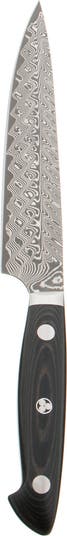Created with Master Bladesmith Bob Kramer, the KRAMER by ZWILLING EUROLINE Stainless Steel Damascus Collection features stainless steel blades made to his exacting standards, maximizing curves, balance and utility.The knives are hand-finished with a traditional 3-step process by skilled Japanese artisans. Combined with the SG2 micro-carbide powder steel, the ice-hardened CRYODUR blades deliver scalpel-like sharpness, stay sharper longer and can withstand more sharpening over their lifespan. The SG2 super steel core is protected by an exceptionally beautiful 100-layer Chevron Damascus pattern, which is complimented by a stunning black linen Micarta handle and signature Bob Kramer mosaic pin.