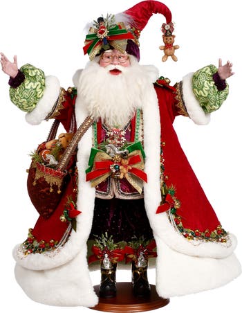 Mark Roberts Kris Kringle Santa is a luxe, collectible holiday figure known for its rich fabrics, intricate trims, and impeccable hand-finished details. With a warm, classic expression and whimsical styling, he brings an old-world Christmas charm that feels both elegant and magical. Perfect for mantels, entryways, or as a centerpiece, this Santa adds a premium, storybook touch to seasonal décor.