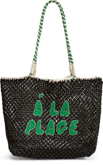 French for summer , this aptly named bag that showcases an airy woven design, braided leather handles and cheery color-pop embroidery will perfectly complement your warm-weather look