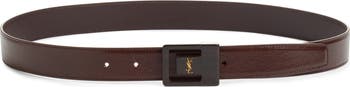A squared-off buckle frames a Cassandre-logo plaque on this sophisticated belt crafted in Italy from topstitched calfskin leather.