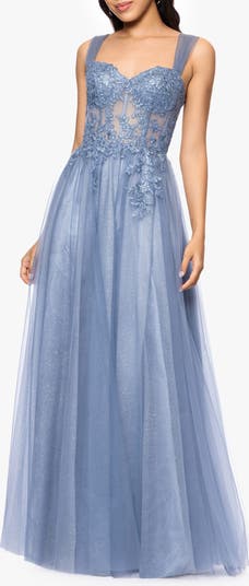 Lace Embellished Corset Glitter Tulle A-Line Gown