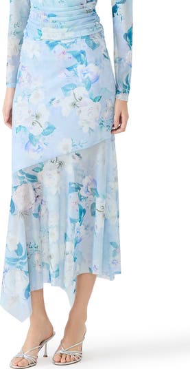 Lacie Floral Print Asymmetrical Hem Midi Skirt