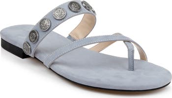 Polished studs add an extra flash of glamour to a strappy sandal grounded by comfort-enhancing memory foam cushioning.