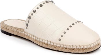 Polished studs accentuate the croc-embossed leather of this chic yet casual mule.
