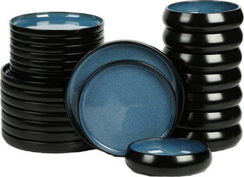 Whether hosting guests or enjoying your everyday meals, Stone Lain s Lagoon dinnerware collection sets the mood. Made in durable stoneware with modern design and bold color options, Lagoon is a set that adds a touch of drama and intrigue to your table. Featuring 12 or 24 pieces, Lagoon includes dinner plates, salad plates and unique bowls, all of which are microwave and dishwasher safe - ideal for contemporary lifestyle.