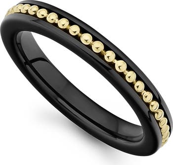Beautiful Caviar-beaded 18-karat gold lends signature texture and striking contrast to this smooth black-ceramic band.