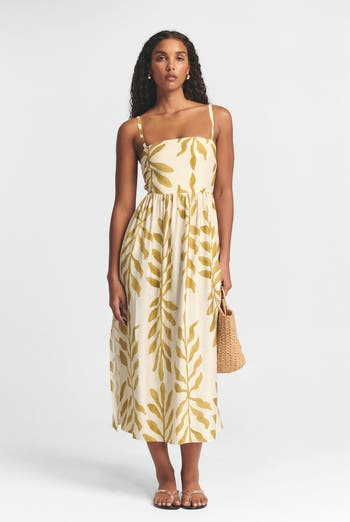 The LANAH MIDI DRESS by ST MRLO is a breezy summer staple designed for effortless style. This is dresss ia woven midi-length