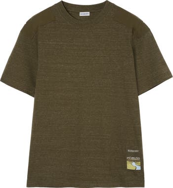 A crew-neck T-shirt in cotton melange jersey, finished with tonal cotton nylon gabardine panels in the style of epaulettes. The style features our landscape label, inspired by a 1993 archival campaign and its slogan: ‘Burberrys grew out of the country life. Cut to a relaxed fit.||Rib-knit neckline