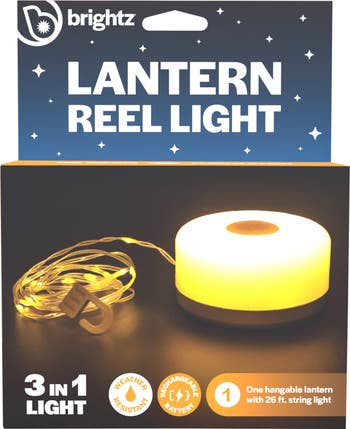 Add a little twinkle to your campsite, patio or backard bbq with this clever light combo that includes a hanging lantern and 26 feet of string lights. The lights are designed to reel into the lantern base for easy carrying, travel and storage. They feature five different light modes, including steady lights, flashing lights, breathing effect, combo mode (lantern and string light together) or a lantern-only mode for a cozy glow.