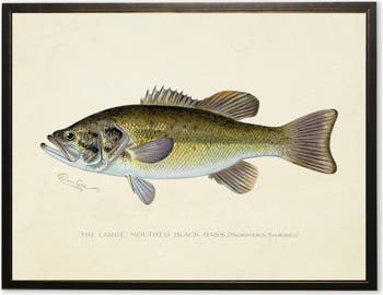 This vintage-inspired print, framed in a copper and black wooden frame, features a large-mouthed black bass. Sized at 20 inches by 16 inches, this made in the USA frame makes for a beautiful addition to any wall.