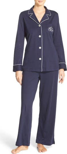 Classic menswear-inspired PJs are updated in an ultra-comfy stretch-knit fabric with contrasting piping.