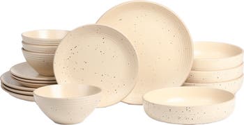 Drawing out the warm, relaxing, and cozy character in your space doesn t need to be hard to get right. Take it from our Lauren Dinnerware Set. With a stone-smooth feel featuring ridged rims that run across each dish, Lauren effortlessly adds farmhouse charm to your dining table. How? By bringing together artisinal aesthetics with country appeal. Perfect for everyday use or hosting intimate get-togethers, this set includes everything you need to round out your collection, thanks to dinner plates, salad plates, soup bowls, and pasta bowls—all uniquely speckled. THIS SET INCLUDES 4 large round 10.31” dinner plates 4 round 8.07” salad plates 4 round 6.1” soup bowls 4 large 7.87" pasta bowls