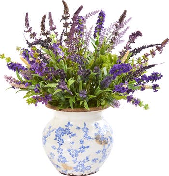 Channel the beauty of the countryside with this arrangement of artificial lavender; showcasing vivid, realistic florets delicately nestled amid green foliage, this bouquet would instantly add color to any bare space. Reaching 17” high from a floral vase, it would look beautiful displayed on a kitchen counter or island.