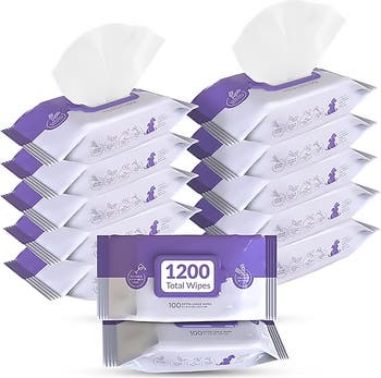 Lavender Scented Pet Wipes 12 Packs of 100 (1200 Total) Extra Large Wipes for Gentle Cleaning Deodorizing