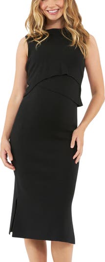 Elevate your wardrobe with our Silver Marle Layered Knit Nursing Dress, designed for modern mothers. This chic sleeveless dress features a high neck and a unique cross front layered design, providing easy access for discreet nursing. Crafted from a soft blend of 50% Viscose, 35% Cotton, and 15% Nylon, it offers a semi-fitted silhouette that flatters your shape. Perfect for any occasion, this dress measures 110cm in length (size small) and is easy to care for with a cold hand wash. Experience comfort and style with this essential maternity piece.