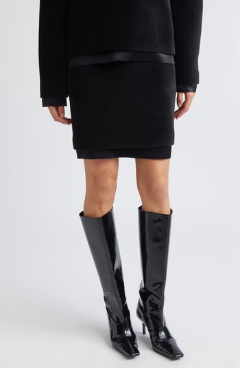 A peekaboo lining lends a layered effect to this crepe skirt done in a minimalist A-line silhouette.