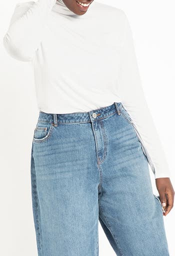 This close-fitting turleneck top is the perfect starting point for your cooler weather looks.
