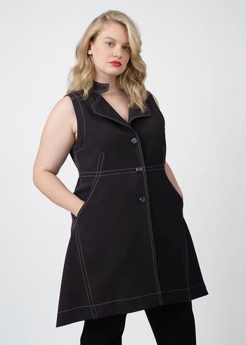 This versatile See ROSE Go Layering Vest converts to a dress with a simple innovative snap at the hem. The Layering Vest is expertly crafted in poly-crêpe with sharp tailoring adding a refined touch to your wardrobe. This beautiful Vest includes contrast stitching, on-seam pockets, hidden snap at the chest, hidden snap at the hem and shell-toned buttons.