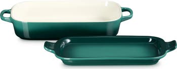 A versatile platter lid tops a classic rectangular stoneware casserole that delivers even temperatures and prevents scorching for food that s perfectly cooked every time. Safe for the freezer, microwave, oven, broiler and dishwasher, it s an all-around star player, and it looks beautiful on your table, as well. The dense stoneware helps block moisture absorption to prevent cracking, and the impermeable exterior enamel resists scratches and stains. Best of all, the glazed interior easily releases food for a quick cleanup.