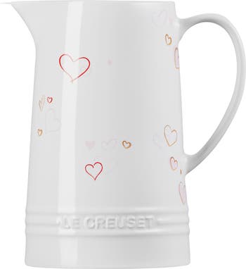 This heart-adorned pitcher inspired by iconic mid-century design is made from dense stoneware that helps regulate the temperature of the contents and keep beverages cold or hot between refills. The raised design subtly brands the piece, and the nonstick, glazed interior makes it easy to clean and won t absorb odor or flavors over time.