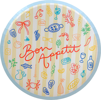 Italian elegance meets coastal charm. Inspired by lively conversations and the joy of good food, the Le Dinner collection brings playful, food-inspired motifs to your table. Whether it’s a casual weeknight feast or a special gathering, this collection makes every bite feel like a celebration. So clink your glass and pass the plate—we’re turning little moments into cherished memories. Buon appetito! Our Bon Appetit Dinner Plates are overflowing with charming illustrations and inspired by italian seafood feasts and vibrant Mediterranean life.