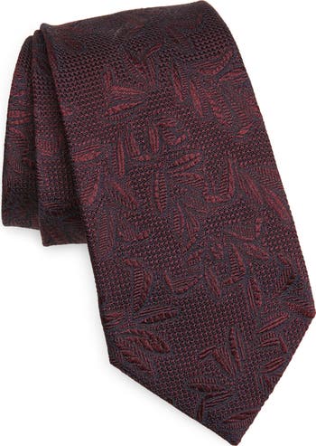 Nature inspires the leaf pattern of this handsome silk jacquard tie that adds a sophisticated flourish to business and formal looks alike.