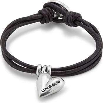 UNOde50 leather bracelet with a sterling silver-plated heart-shaped charm engraved with the Unode50 logo.