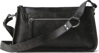 Silvertone hardware heightens the moto vibes of an artfully worn leather shoulder bag that takes your casual style up a notch.