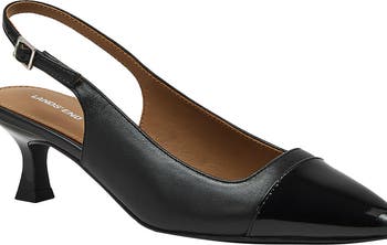 Our new Leather Slingback Cap Toe Kitten Heels are the perfect go-to shoes for polished attitude. Cap-toe heels add a sophisticated edge to dressier looks, perfect for special occasions. Whether heading out for a chic night on the town or aiming to make a footwear fashion statement at an important meeting, these kitten heels are a great versatile option. The delicate sling-style buckle strap wraps comfortably around your ankle, ensuring that your feet stay secure and supported throughout the day or night. The comfortable 2" curved kitten heel with an elegant pointed toe shape pairs well with every outfit. Easily match with wide-leg denim and a basic white tee for an uptown-polish-meets-downtown attitude that your favorite influencer serves. Women s Leather Slingback Cap Toe Kitten Heels are the perfect stylish companion. Offered in three colors: Black, Tan-Black and Faint Blush. Women s shoe sizes range from 6-10, with half sizes available and whole size 11.
