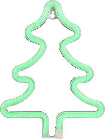 No ornaments needed for this 9.5” green Christmas tree light that instantly brightens up your holiday. Our LED wall art uses vibrant LED lights to form a modern, neon-style Christmas tree silhouette. Designed as a festive wall or window decoration, this cord-free, battery-operated light casts a cheerful glow wherever it’s placed—on your wall, near your Christmas tree, or inside a window for all to enjoy. Light up your Christmas with this long-lasting, energy-efficient holiday accent. Product Features: Color: green rope lights LED chip type: SMD 2835 Approximate width: 11mm Approximate thickness: 8mm One sided design Additional Product Features: LED lights use up to 90% less energy Stays cool to the touch Requires 3 AA batteries - not included Cannot be connected together with other lighted items Comes ready to hang with keyhole hangers Hanging hardware not included UL certified and approved for indoor use Dimensions: 9.5"H x 7"W x 1"D Material(s): plastic/silicone/wire/metal