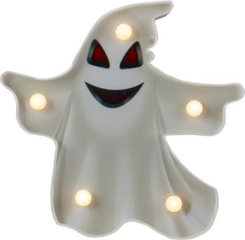 Illuminate your Halloween décor with this lighted Halloween ghost decoration, a playful yet spooky accent perfect for indoor or covered outdoor displays. Featuring a classic ghost silhouette, this wall or shelf decoration glows with super bright LED lights that give it a modern flair while maintaining the fun, eerie vibe of the season. The energy-efficient LEDs are built to shine all night long, making this a reliable centerpiece for Halloween parties, haunted house setups, or porch displays. Designed with convenience in mind, this lighted ghost marquee includes a built-in keyhole loop on the back, making it simple to hang on a wall, door, or anywhere you want to add glowing charm. The lightweight design allows for easy mounting and repositioning, so you can customize your spooky setup with ease. Whether you re creating a haunted entryway, decorating a child s Halloween party, or adding to your festive home décor, this LED light-up ghost sign is the perfect finishing touch. Combine it with pumpkins, spider webs, skeletons, and other Halloween lights for a complete themed display. Add a glowing dose of frightful fun to your seasonal setup with this eye-catching and energy-efficient Halloween marquee decoration. Product Features: Illuminated by 5 LED lights Color: warm white bulbs One-sided design LED lights use up to 90% less energy Bulbs stay cool to the touch Requires (2) AA size batteries - not included Convenient on/off switch on the back Comes ready-to-hang with back keyhole hooks Recommended for indoor decorative use only Dimensions: 7"H x 7"W x 1"D Material(s): plastic