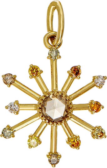 Brown, yellow and white diamonds enhance the starburst silhouette of a pendant that makes any chain more striking.