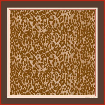 "Leopard Allure" is a bold expression of timeless style, inspired by the untamed beauty of leopard print. The design captures the perfect balance between wild energy and refined sophistication, making it a striking statement piece for any wardrobe. Rendered in warm earthy tones with a sleek contrasting border, it offers both versatility and impact from every angle. Meticulously finished with hand-rolled edges, this luxurious scarf comes with a high-end package, making it as perfect for gifting.