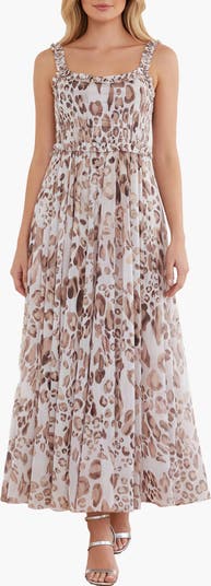 Leopard Chiffon Smocked Cami Ankle Gown