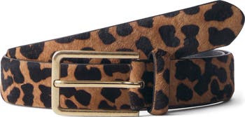 Lively leopard spots bring on-trend impact to a polished belt finished with a golden buckle.