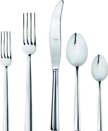 The Levantina collection by Mepra is flatware that exudes luxury as a lifestyle. Its cool, minimal, sexy style is inspired by influential designers like Angelo Mangiarotti and exalted through generations of tradition, technique and superb materials. Experience the pinnacle of Italian craftsmanship with our exquisitely crafted flatware. Made in Italy from the finest 18/10 stainless steel and boasting a durable 3.0mm thickness, each piece combines unmatched durability with ergonomic comfort. The knives, designed with double serration for lasting sharpness, seamlessly balance elegance and practicality, while the dishwasher-safe feature ensures effortless maintenance, making every meal a delightful experience.