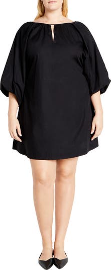 Voluminous puff sleeves frame this lightweight dress cut in a leggy length and made with a dainty back tie to shape the silhouette.