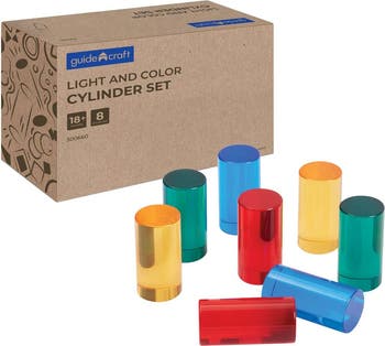 18 months up. Children can explore the behaviors of light and color through the pieces in the Light and Color Cylinder set. Smooth, transparent pieces made from solid acrylic are sized just right for little hands. Enhance building activities while encouraging the development of simple math skills like patterning. Combine with other Light and Color sets to expand the possibilities for meaningful play.