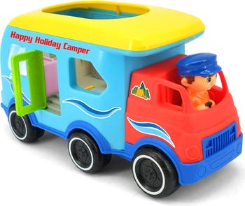 LIGHT SOUND: HAPPY CAMPER ACTIVITY - Experience the thrill of the open road as the camper effortlessly glides forward with motorized action, immersing you in the excitement of a real camping adventure. Let the journey come alive with vibrant tunes that serenade you as the camper travels, infusing every moment with energy and joy, creating an atmosphere brimming with fun and excitement. With seamless precision, the camper automatically comes to a stop after each forward motion, surprising you with its interactive capabilities and ensuring every moment is filled with anticipation and delight. Interactive play! With realistic engine revs and horn for added fun. Shower Splash Effect: Pressing the shower button activates water splashing sounds, mimicking a refreshing shower experience. Toilet Flushing Sound: Push the toilet button to hear the sound of flushing, adding a humorous touch to the playtime. Stove Cooking Sound: Press the stove button to hear sizzling and cooking sounds, encouraging imaginative cooking scenarios. Light-Up TV: The TV inside the camper lights up and plays fun sounds, allowing kids to create their own camping entertainment. These features combine to create an immersive and interactive play experience that stimulates imagination and creativity in young campers.
