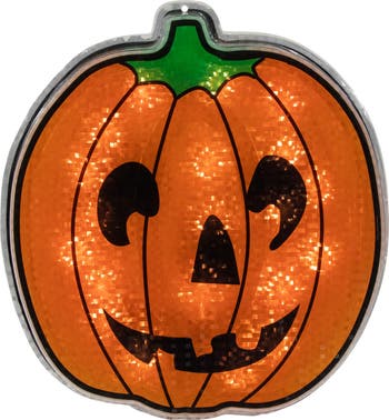 Illuminate spooky season windows with this light up jack o lantern decoration, a glowing classic that instantly signals October fun. This vibrant Halloween window decoration showcases a cheerful jack-o’-lantern face, outlined with bright lights to ensure high visibility from indoors or outdoors. Designed to catch attention both day and night, it’s the ideal way to welcome trick-or-treaters and set the tone for haunted gatherings. The decoration is crafted from durable, lightweight materials for easy mounting in windows, doors, or glass panels. When lit, the iconic pumpkin grin creates a warm and playful ambiance, balancing spooky charm with family-friendly appeal. The lighted silhouette stands out even from a distance, making it a standout addition to seasonal décor. Whether used alone or paired with other Halloween window lights, this jack o lantern design offers effortless holiday style with plug-in convenience. It’s energy-efficient, reusable year after year, and easy to store between seasons. Ideal for apartments, homes, offices, or classrooms, it brings the spirit of Halloween to any space. Make your Halloween display shine with this lighted pumpkin window decoration—a timeless symbol of autumn mischief and fun. Its glowing presence helps create a welcoming and festive environment, perfect for ghostly nights and ghoulish delights. Product Features: Color: clear bulbs / white wire Number of bulbs: 20 Bulb size: mini 24" white lead cord Double-sided design Additional Product Features: UL certified and approved for indoor and outdoor use If one bulb burns out the rest will stay lit Comes with a replacement bulb and spare fuses Durable and re-usable Contains 1 plug with end connector which allows you to stack multiple lighted items together (not to exceed 210 watts) Suction cup included Wire gauge: 22 120 volts, 60 hertz, .08 amps, 9.6 watts Dimensions: 13.5"H x 12.5"W x 1"D Mater