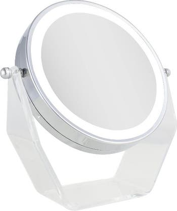 If you re looking for your new beauty best friend, look no further than the swiveling and angle-adjustable Lighted Makeup Mirror. Its dual-sided 8x and 1x magnification will make you feel like a makeup master, and the cordless LED lights will ensure you won t miss a single detail. Fully loaded with four AAA batteries and available in chrome, satin nickel, and rose gold finish - this mirror is as versatile as it is gorgeous!