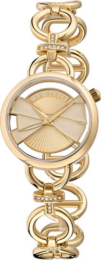 An open bow-tied dial cinches sophistication for this jewelry-inspired bracelet watch complete with pavé crystals.