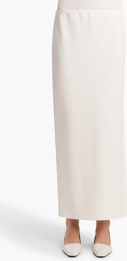 For pre-fall 25, Catherine Holstein continues her contemplation of power dressing from the 80s and 90s, presenting this minimalist maxi skirt that combines the pebbled texture of crepe and the softness, stretch and fluid drape of jersey. A single side slit eases the columnar cut.